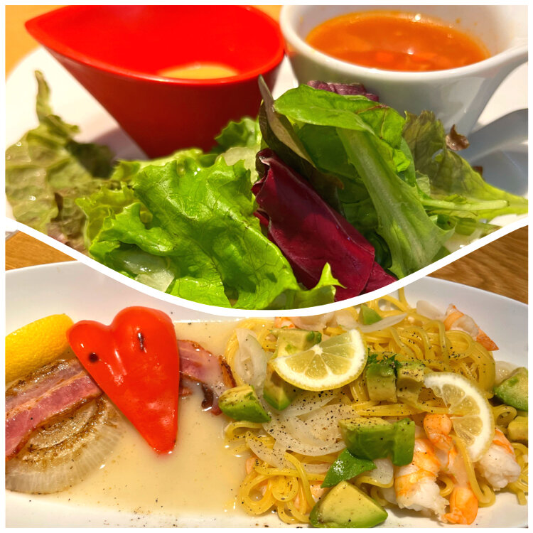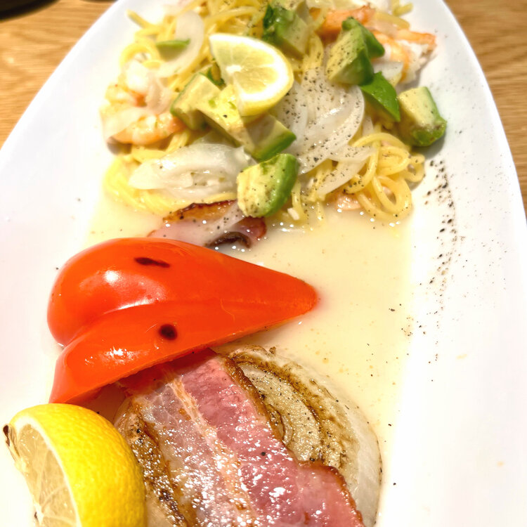 パスタはエビとアボカドのレモンソースでさっぱりと頂けました.