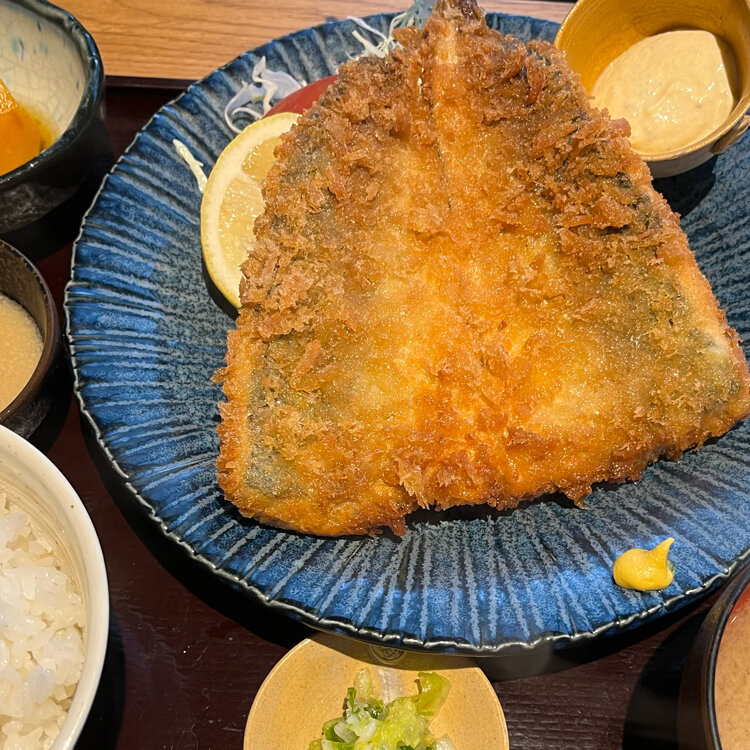 数量限定のアジフライ。 凄く大きいのに、私の写真では伝わらない。 本当に、大きくて食べ応えが凄い。 お刺身定食も天ぷらもうどんもみんな美味しかった。 しかし、都内にある居酒屋さんの同列のお店が何故にこんな所にあるのか?