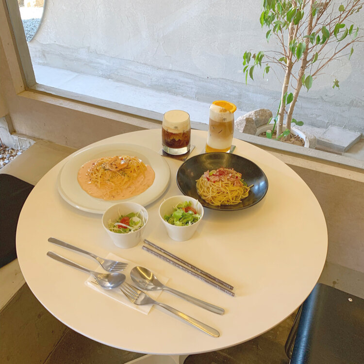 cafe NAMS(大阪/住之江公園)   ☑︎ 塩ラテ ☑︎オレンジラテ☜おすすめ ☑︎ロゼパスタ ☑︎ ペペチ    特にオレンジラテがおいしいのでおすすめ🍊🤎       #私のことりっぷ旅#韓国っぽカフェ