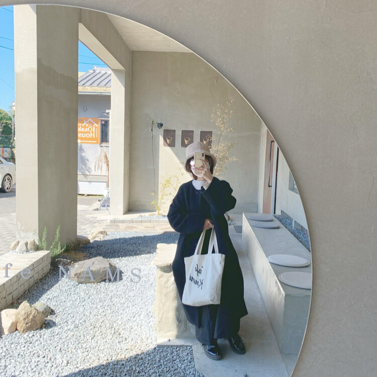 cafe NAMS(大阪/北加賀屋) 外にある大きな鏡がおしゃれ🪞   どこを切り取っても素敵な写真が撮れるカフェでのんびりゆったりできました☕️       #私のことりっぷ旅#美しい町
