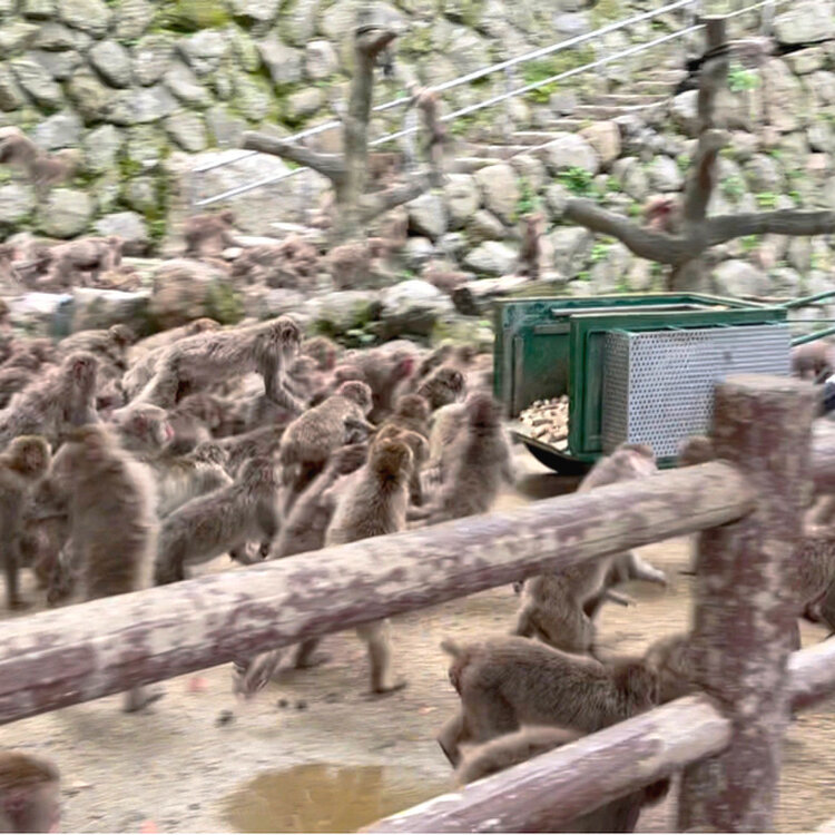それまではだらーっとのんびり過ごしている猿たちが、エサの準備をし始めたことに気づくとキーキーみんなで鳴き始めて、サル寄せ場に集まってきます。ここがラッキーチャンス🍀*゜