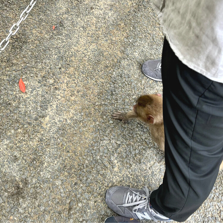 股の下を猿がくぐるといいことがあるという幸せジンクス⁉️があるので、みんなで股を広げて待っていると・・・あっ❣️旦那の股をくぐった🙊♡