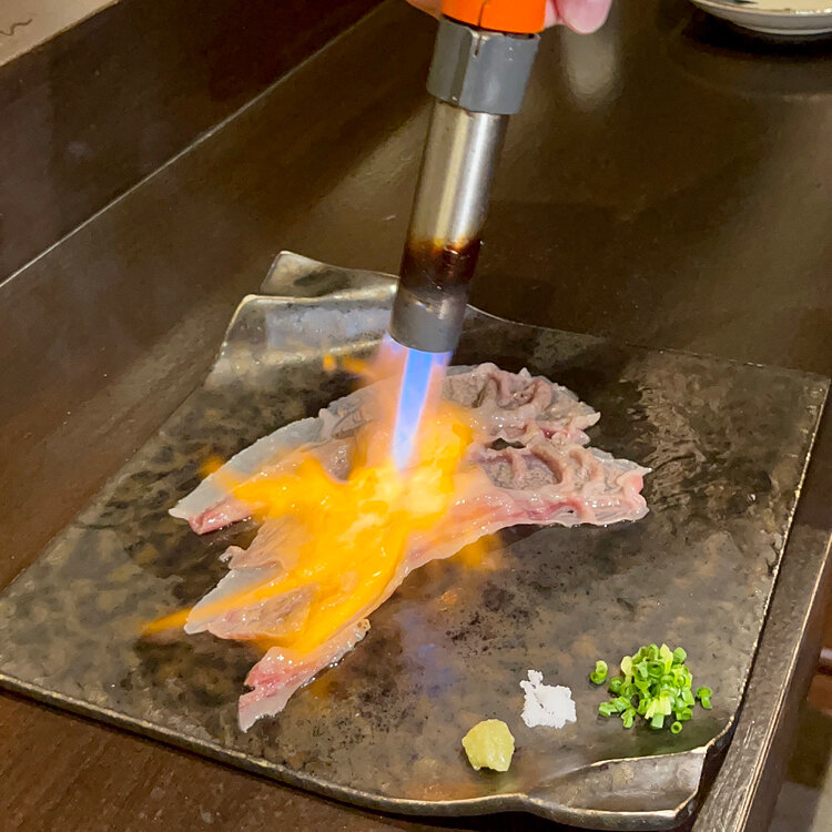 牛肉の握りは目の前で豪快にバーナーで炙ってくれました。