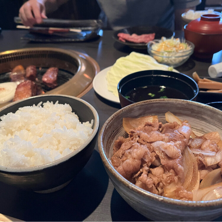肉めしは、ご飯と牛丼の具がふたつの丼にわけて提供❣️モリモリですよ~味付けも濃すぎず肉の旨味でごはんがすすむ~🍚