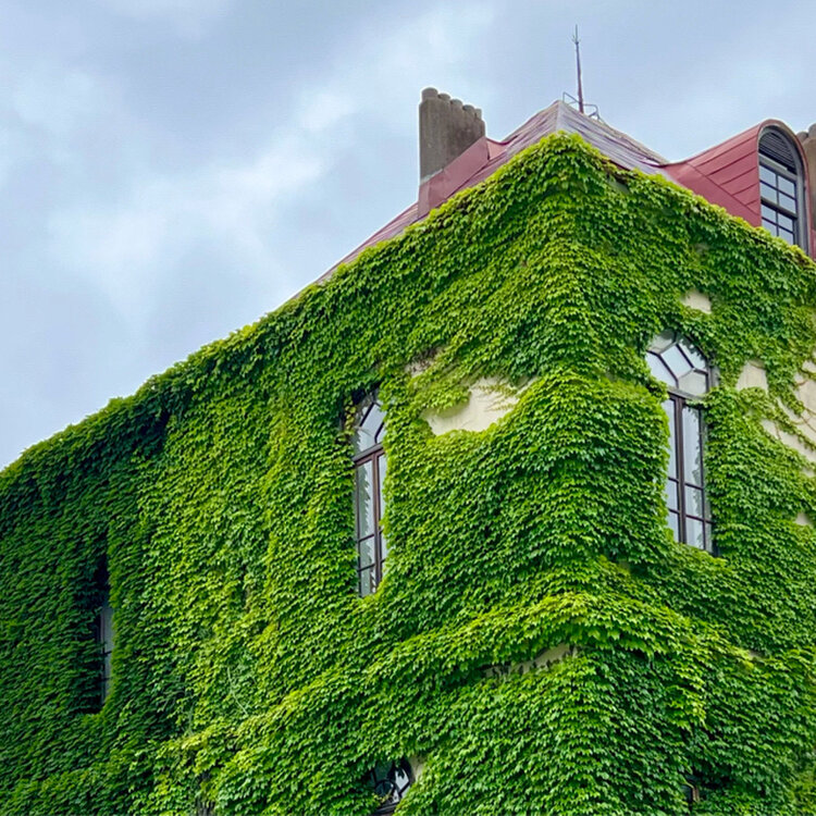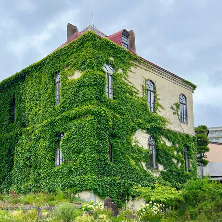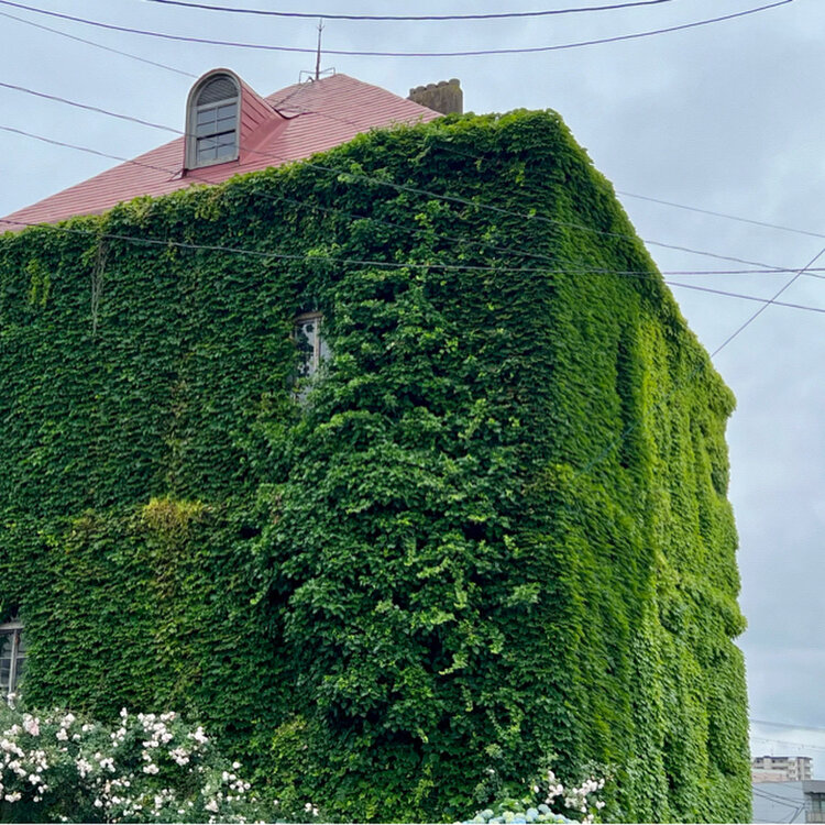 住宅街の一角に🌱蔦が生い茂り存在感ある建物