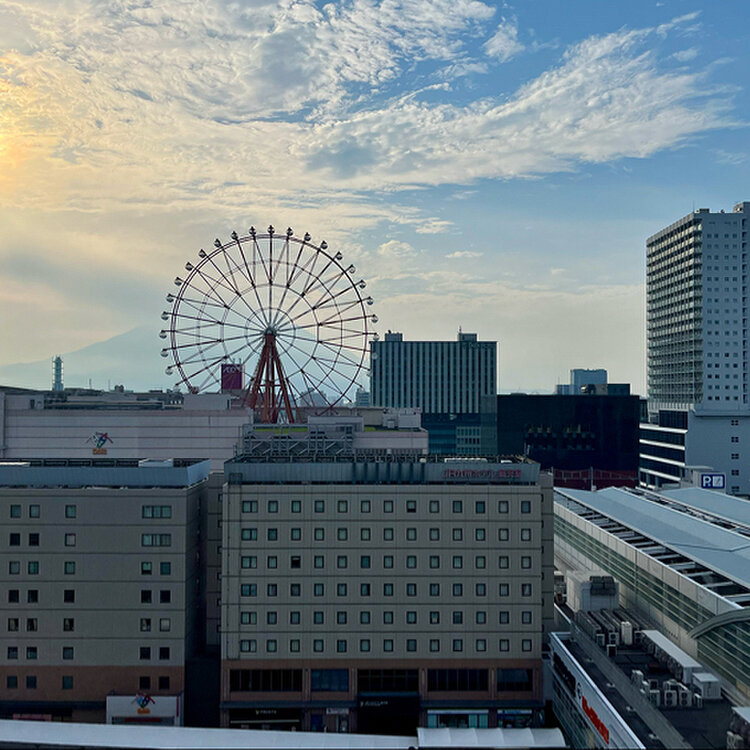 朝にはその観覧車の向こうには霞んだ桜島も見えました😊