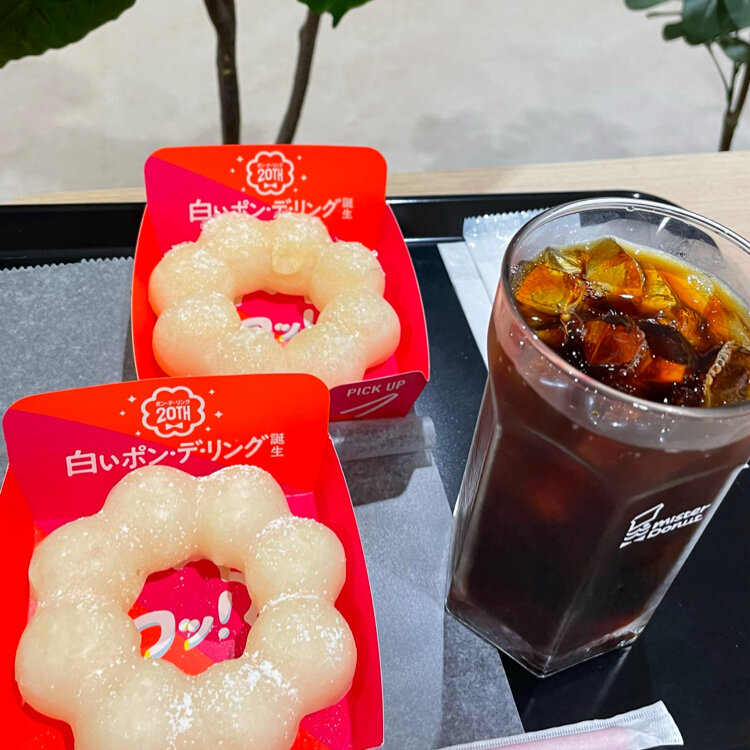 娘は、涼風麺と新発売の「白いポン・デ・リング」を食べたいとミスタードーナツに並びました。