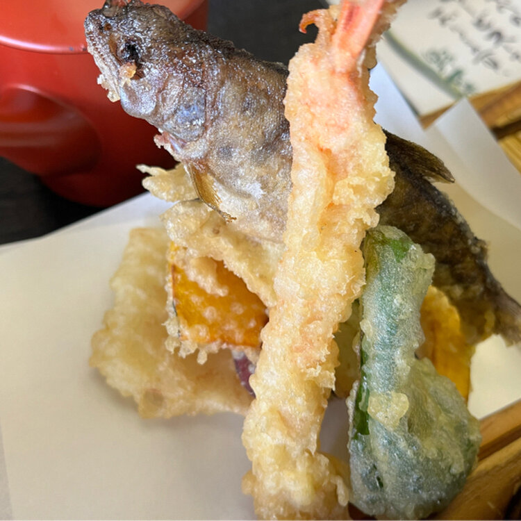 天ぷらは、ヤマベ、エビ、ピーマン、ナス、さつまいも、長芋、かぼちゃとたくさんの種類があって、どれも美味しい〜😍