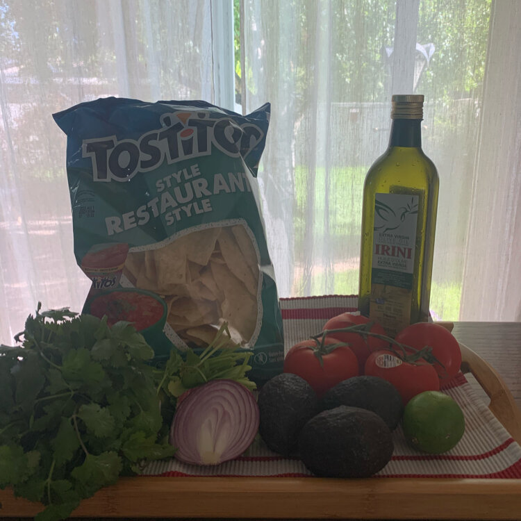 トルティアチップス.赤玉ねぎ.オリーブ油.トマト