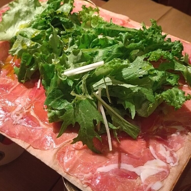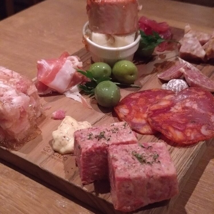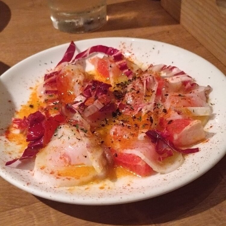 生ハムとサラミのてんこ盛りです✨ 塩味がしっかりとある分、トッピングの野菜と一緒に食べる事で食べやすくなりました😆 お肉屋さんのシャルキュトリー盛り合わせも、色々なお肉を食べれて良かったです😁 タコのカルパッチョも、オリーブオイルだけでなくグレープフルーツも一緒に食べるのは新鮮でしたが美味しかったです😍