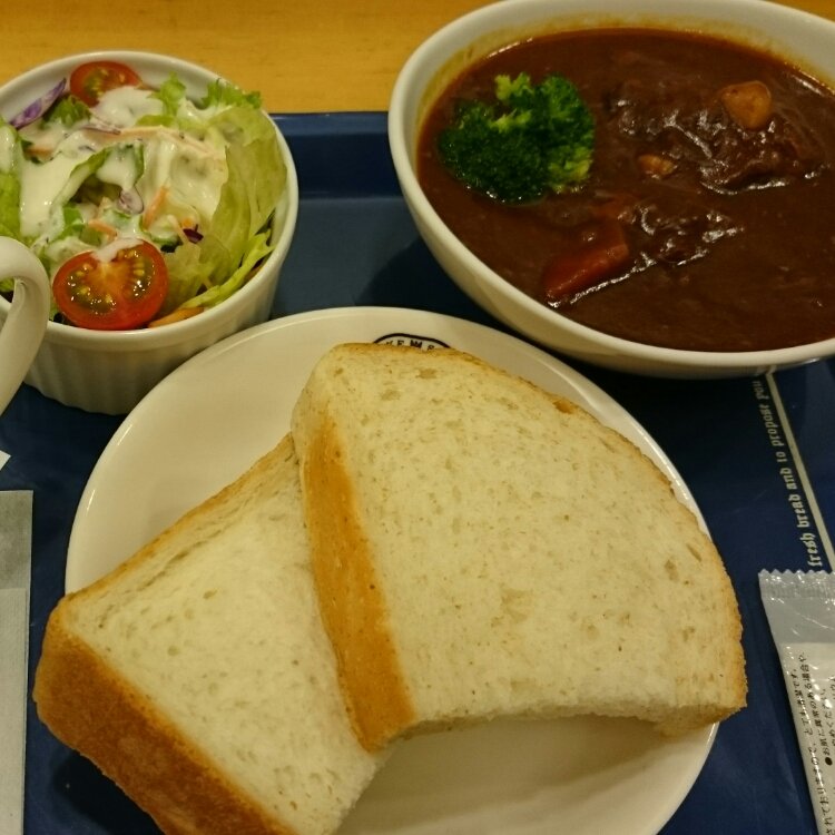 前から気になってた神戸屋キッチンの牛ほほ肉のシチューセットを頂きました。お肉がとっても柔らかくて、美味しいです。そしてパンは食パンやバゲットが食べ放題。ライ麦パンと神戸屋GOLDという何だかゴージャスな名前の食パンにしました。神戸屋GOLDはふっくらやわらかく、もちっとしてて、耳まで美味しかったです。ランチにちょうど良い量でした。