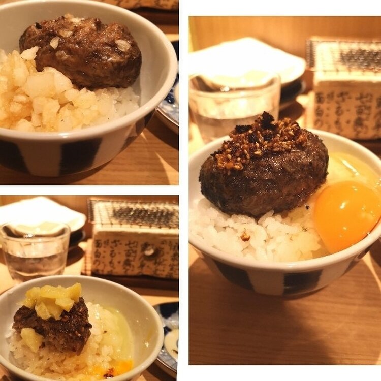 ハンバーグ1個目はそのままご飯🍚にのせて、2個目は鬼おろしぽん酢でさっぱりと、3個目はたっぷりの赤ワイン🍷と八丁味噌🥜を使用した“いとう特製濃厚デミグラスソース”を絡めていただきます✨