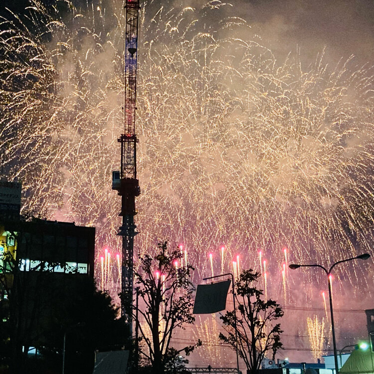 ※クレーンは、現在工事中の場所で、インターコンチネンタルホテルなどが入る複合ビルが2025年完成予定。パーク駐車場からは、以前のYAMAHAビル以上、花火は見えなくなるかと思われます(残念)。