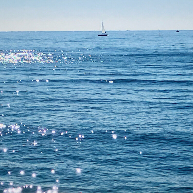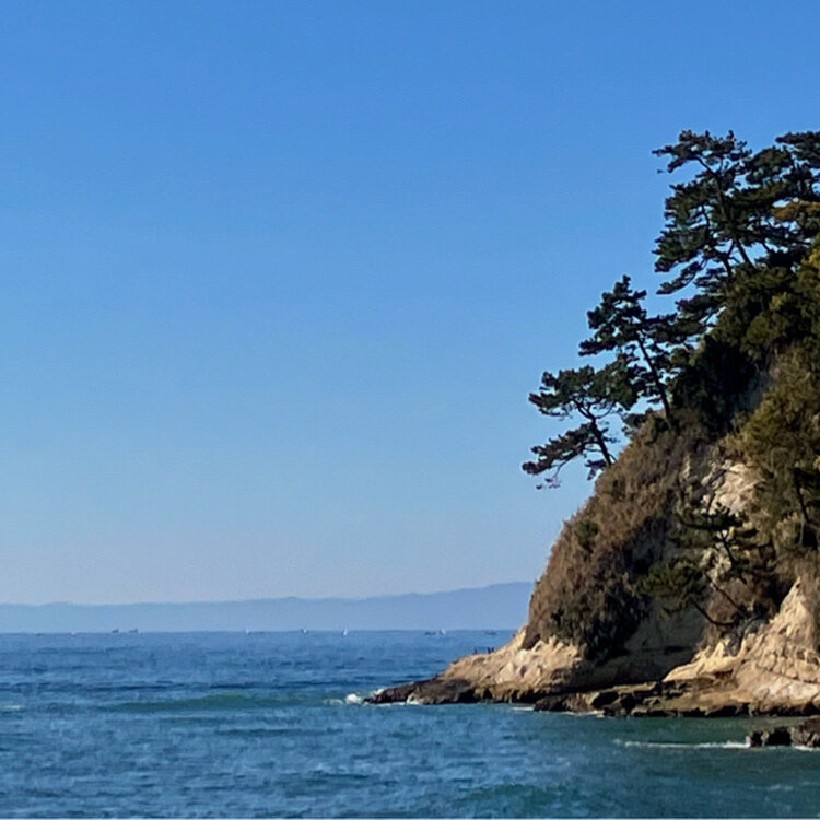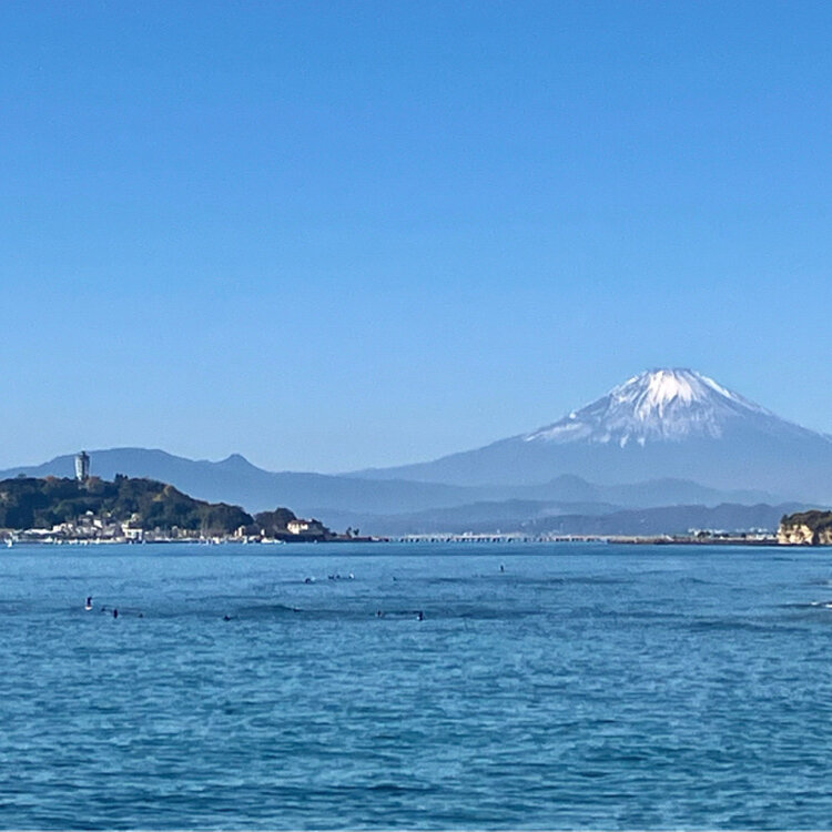時間旅行〜Blue blue 12月の海はキラキラ輝く波でした 青が重なる空と海 富士山も江ノ島も繋がる場所〜稲村ヶ崎 12月の海は大好きな青が何度も何度も光る波でした #ことりっぷと一緒 #美しい空 #美しい海 #ことりっぷ神奈川 #江ノ島 #富士山 #稲村ヶ崎 #ヨット #光る波 #ブルー