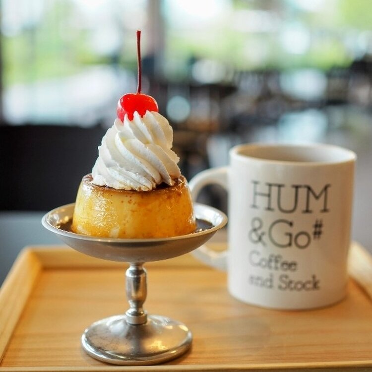 レトロ感ある自家製プリンとホットのデイカフェを。