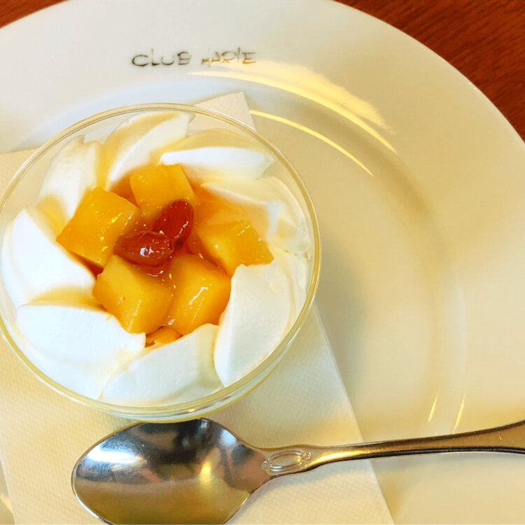 限定品のスフレ以外のスイーツたちもとっても美味しそうで、どれにするかめっちゃ迷ってマンゴープリンスペシャルをチョイス。マンゴーが濃厚でこれまたとっても美味でした。桃のケーキとかもお腹に余裕があれば食べたかったなぁ😋