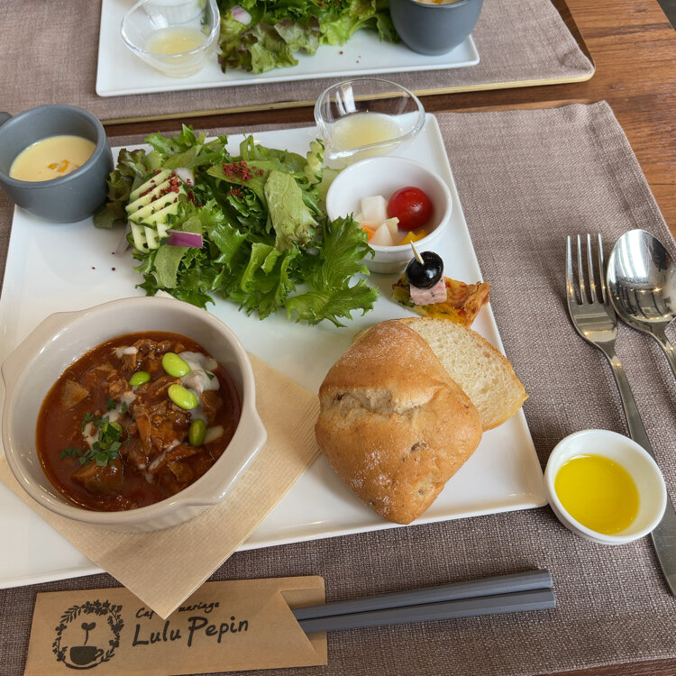 結婚式も出来るカフェ ルルペパンさん😊 ランチをいただきました🍴 ラムのトマトソース煮込みをチョイス お肉ほろほろでとろけてしまいました👍