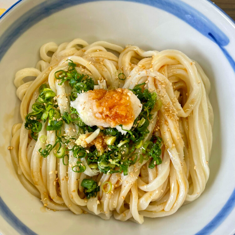 私は夏のメニュー、とろろがのったおうどんに少し甘めのおしょうゆとスダチをかけて頂きました。