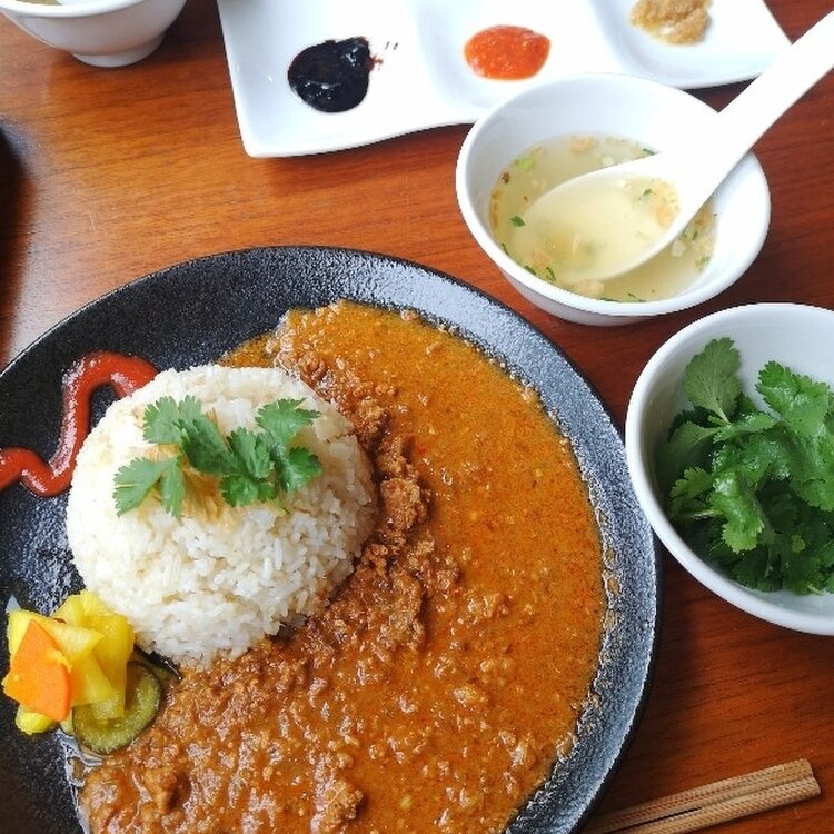スパイスたっぷりのカレー🍛にコリアンダー🌿をたっぷりかけていただきました💓😋🥄