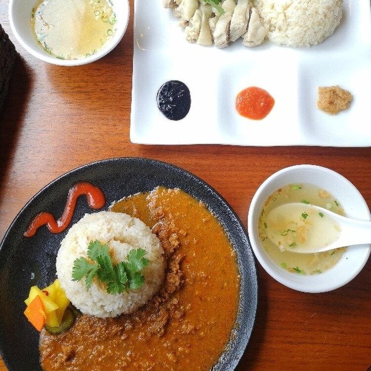 私はマレー風スパイスキーマカレー🍛🌿🇲🇾を、お友達は海南チキンライスをオーダー✨🛎️