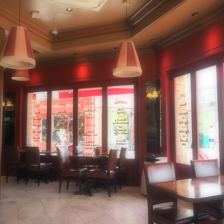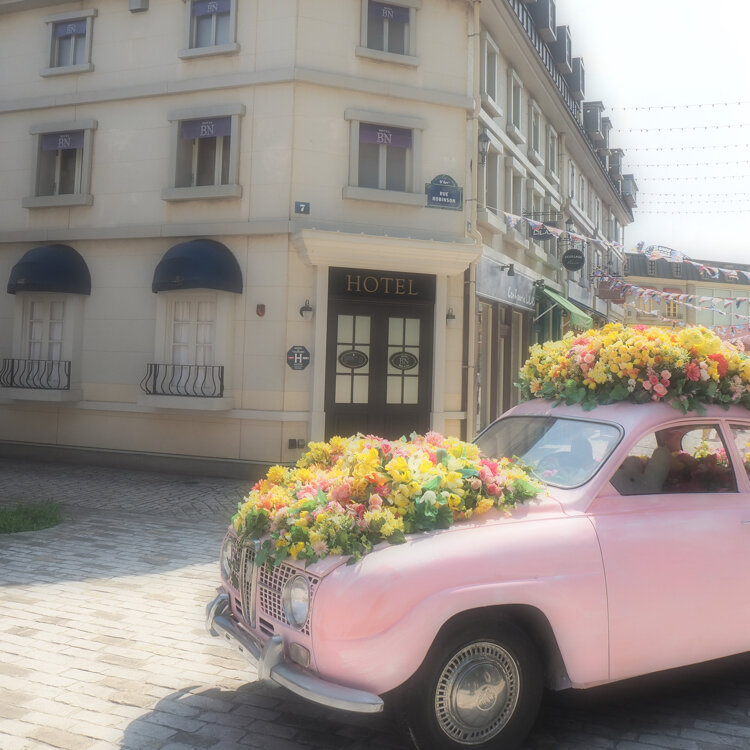 日帰り温泉は10時オープンなので、1時間ほど時間を潰す必要がある。それを見越して持参していたカメラを使い、併設するリサとガスパールタウンで写真撮影をすることにした。パリの街並み風のカフェやショップが連なり、カメラのアートモードで甘めの写真を撮って過ごした。リサとガスパールのグッズを扱った店があり、審美眼がビビッと反応したマグカップがあったが一旦見送り、他にも衝動買いを避けるため、おとなしくカフェでお茶をすることにした。
