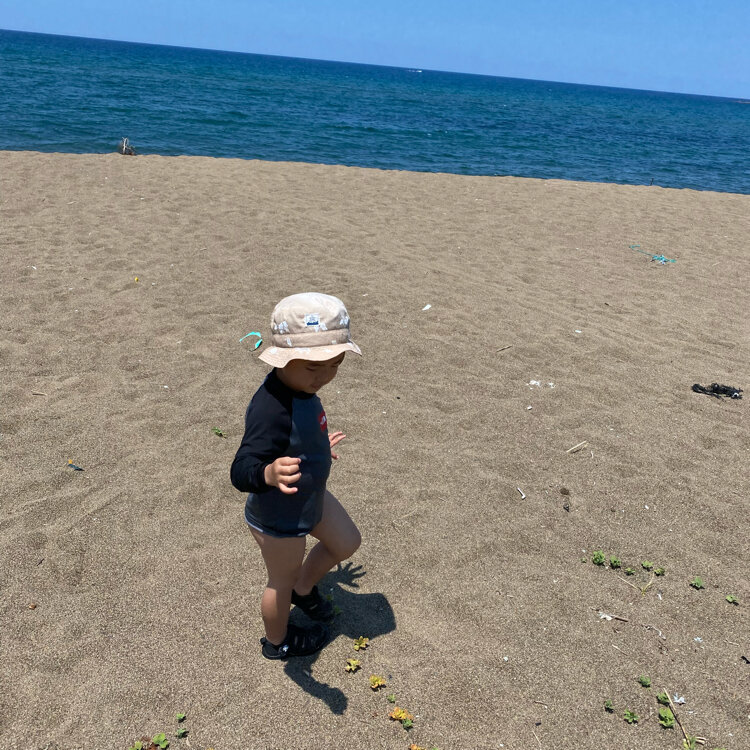 孫が帰って来て慌ただしい毎日が過ぎ去りました😀夏の思い出 いつも海水浴はこの浜辺🏖️ 路駐の車からは暑い砂浜を歩かなきゃ行けないけど私ら家族だけ✨ 砂がつくので最後は🚗横で水を浴びなきゃ行けないけどね。