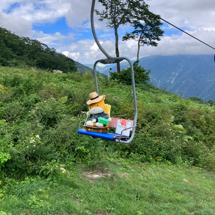 んっ⁉️向こうから来るリフトに見覚えのあるお顔😳、、、ぐんまちゃん❤️笑笑