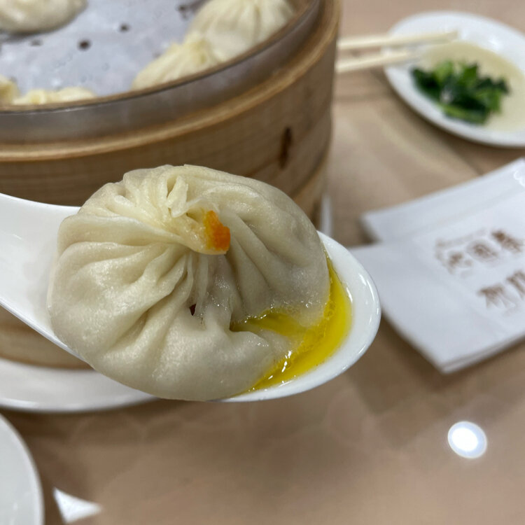 ㊗️祝2000投稿㊗️ 4年ぶり台湾の旅9 沁園春 ランチは台中駅からにある、ありし日の蒋介石行きつけの小籠包の名店沁園春へ 予約無し飛び込みでランチ😆 小籠包一択(笑) あとは青菜炒めをと海老の水餃子をチョイス 鼎泰豊の小籠包より大きめかな⁉️ これもとっても美味しい❣️☺️ 本当にご馳走様です❣️