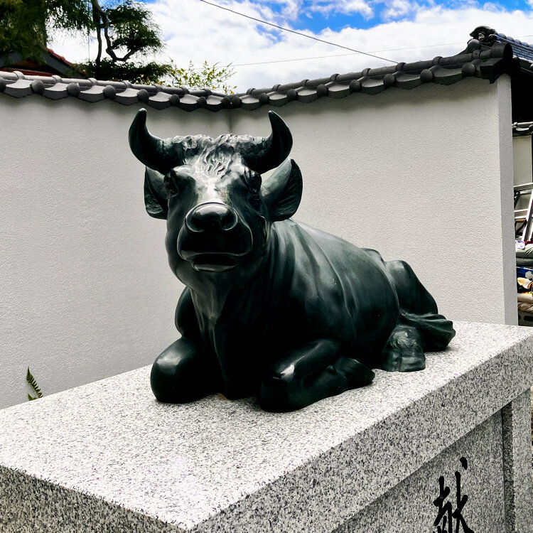 入り口付近に真っ黒の牛の石像が🐃