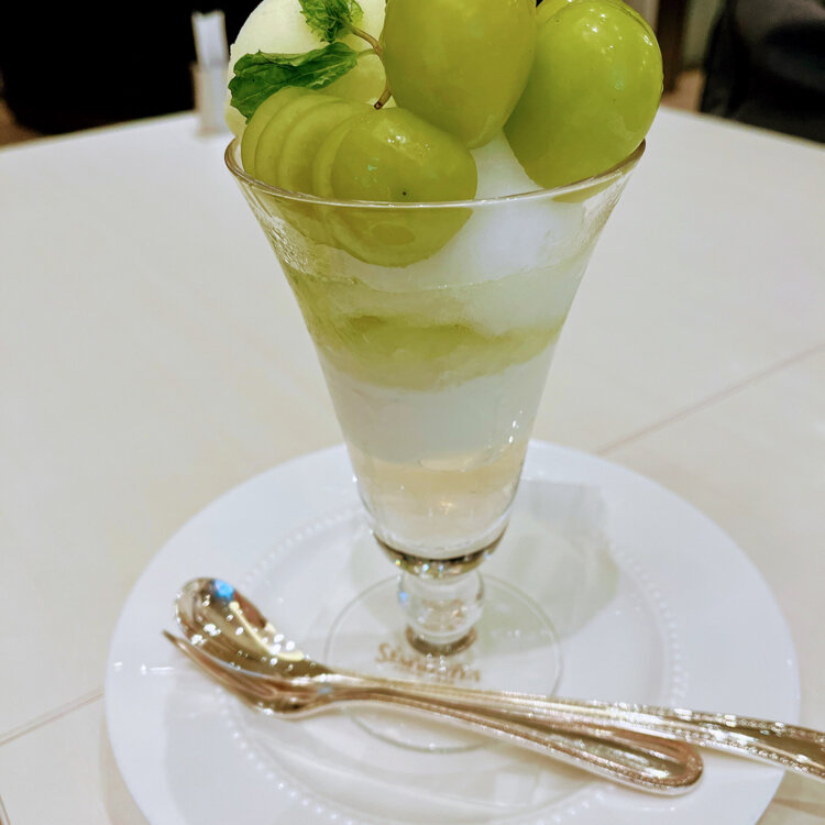 シャインマスカットのパフェ@千疋屋総本店 ここのところ千疋屋のパフェにハマっている