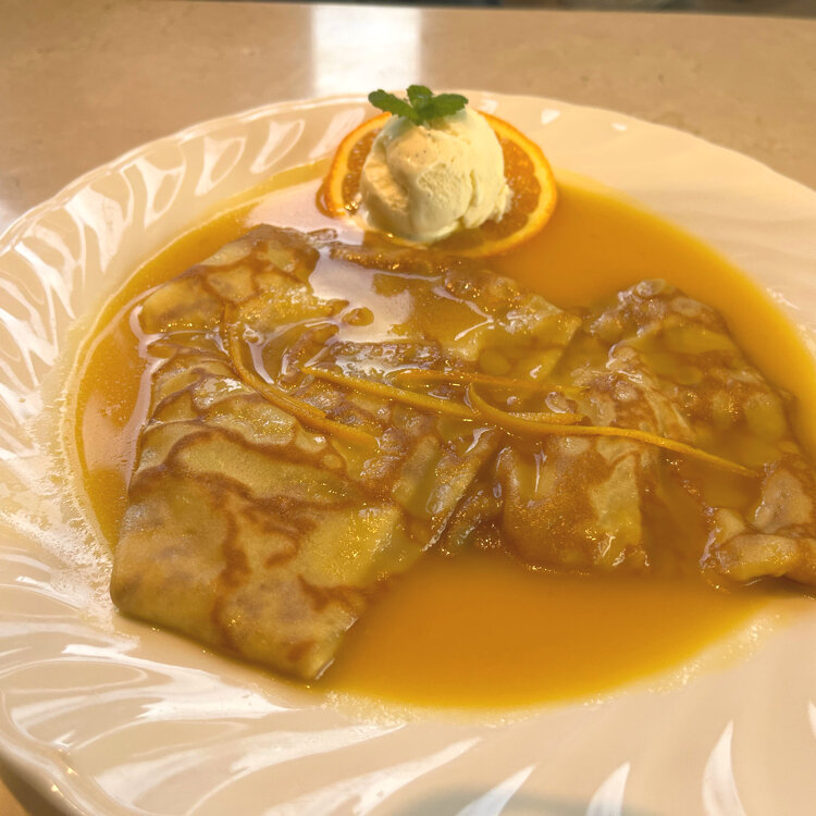 目的はかき氷🍧だったけど、お腹空いていたし美味しそうという事でクレープシュゼットを先に注文🤣