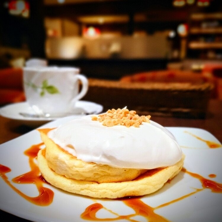 高倉町珈琲 ディナーセットに付いてるハーフサイズリコッタパンケーキ、これくらいが食後には丁度よいから嬉しいですよ。