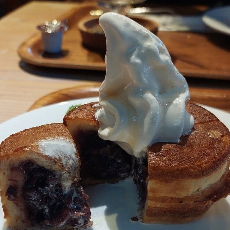 あつあつの太郎焼きの上に、ソフトクリームがのっています🍦