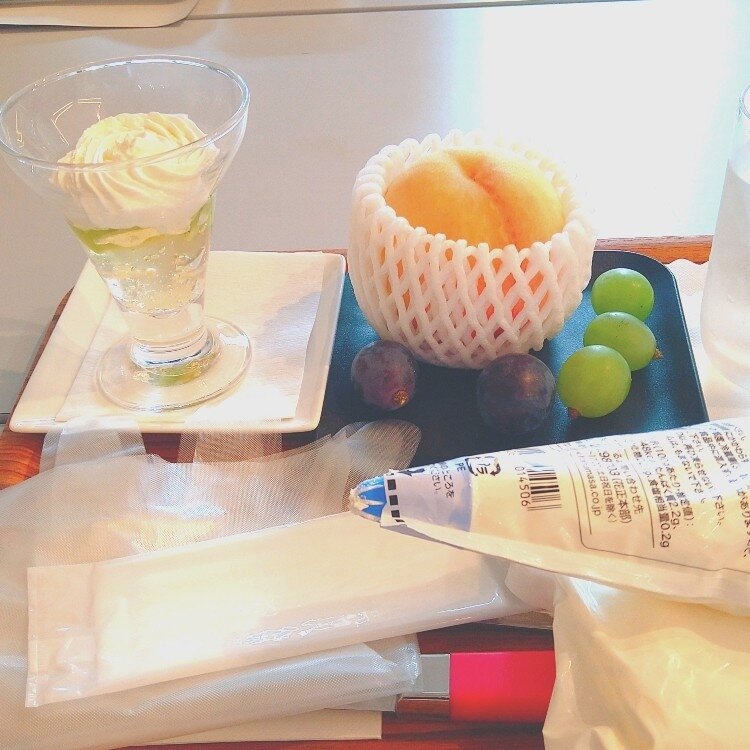 ちょっと?かなり不格好な桃&葡萄のパフェからスタートです♬