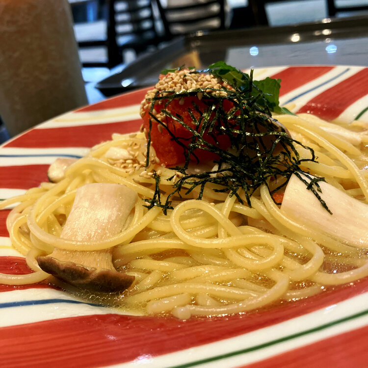 #3種の彩り明太子パスタ🍝#白桃スムージー🍑