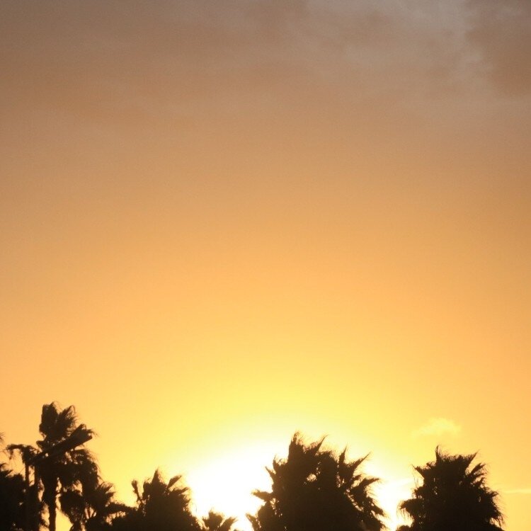 目まぐるしく変わるお天気 日の沈む一瞬、光輝くオレンジ色に染まる空に感動♥