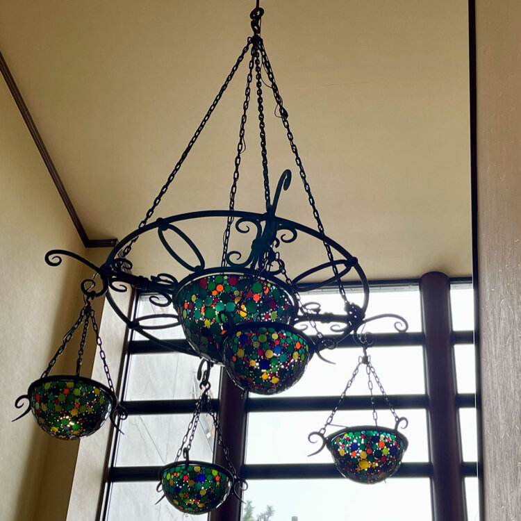 レトロ感溢れる店内は、木を基調とした椅子やテーブルが並んで、大きな掛け時計や綺麗なステンドグラスのシャンデリアが目を惹きました。