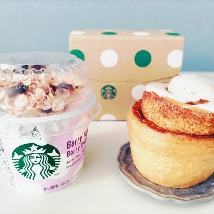 ③④スタバのシナモンロール+グラノーラヨーグルト