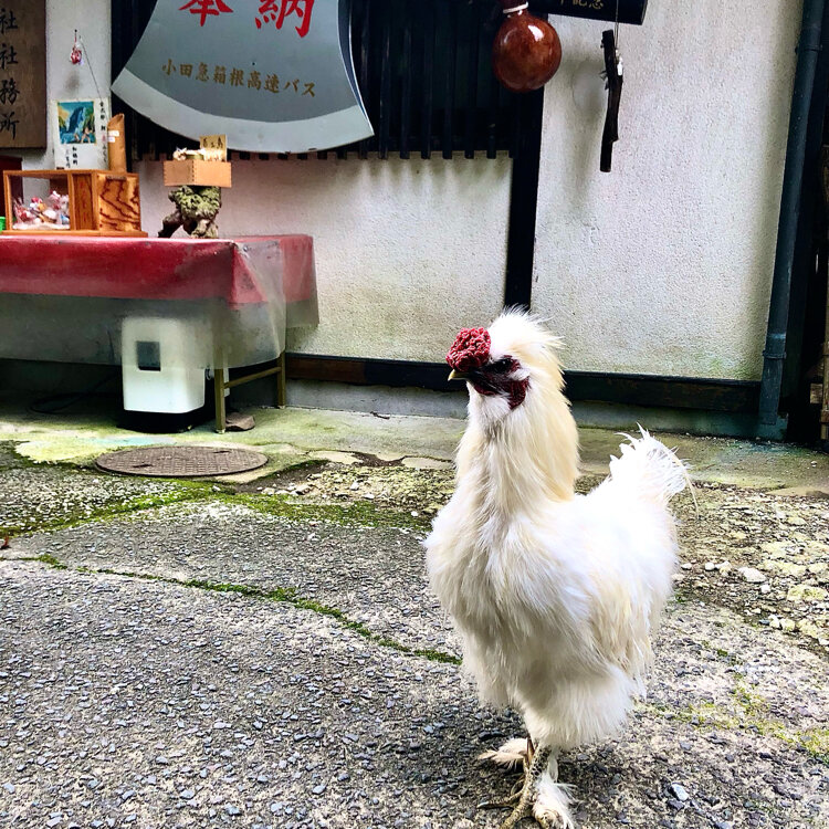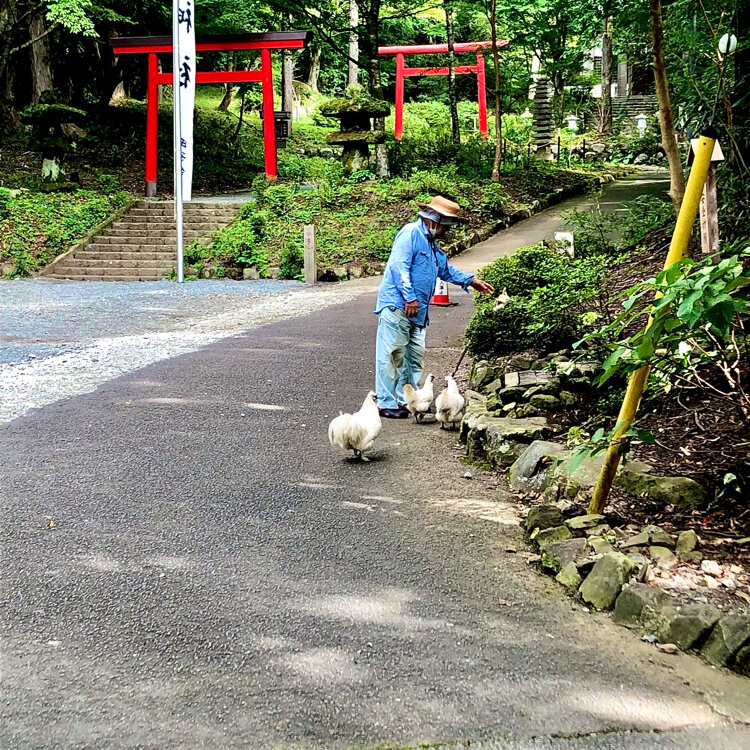 あっという間にニワトリ、烏骨鶏に囲まれていました♪