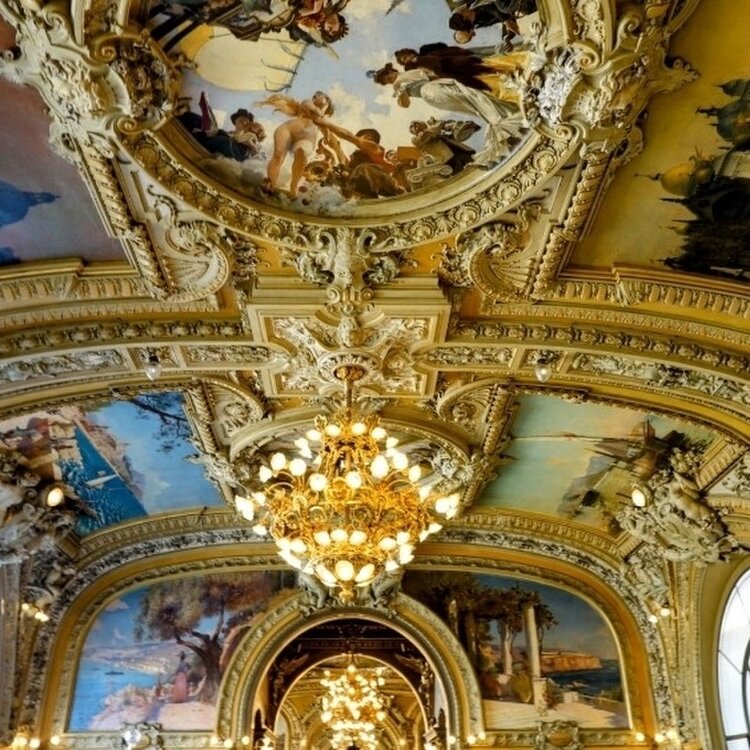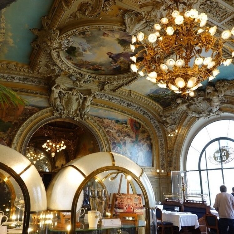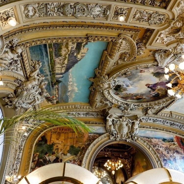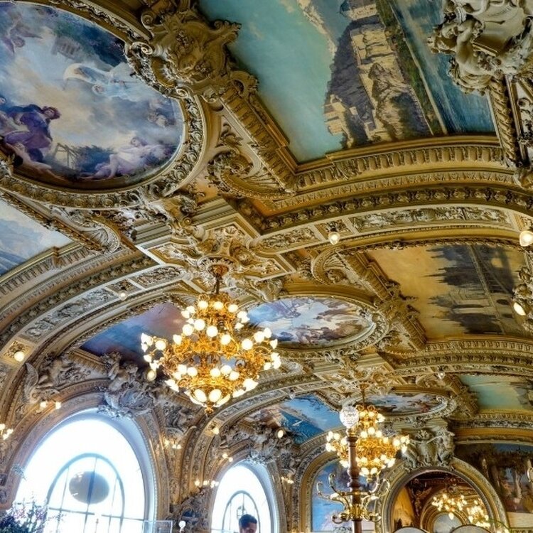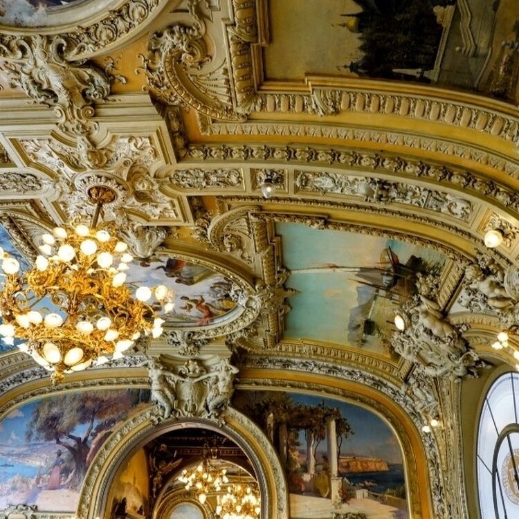 【 ル・トラン・ブルー 】 リヨン駅構内の由緒あるレストラン「ル・トラン・ブルー」 宮殿のような設えの中で過ごしてみたいと思ったから。 天井や壁のフレスコ画が美しいです。 トラベラーの利用も多く、敷居もそれほど高くない印象でした。 構内からの素敵な入口は工事中で、仮設の階段をのぼりました。 オリンピックに備えてか、パリはあちこち工事中。 #カメラ旅 #私のことりっぷ旅