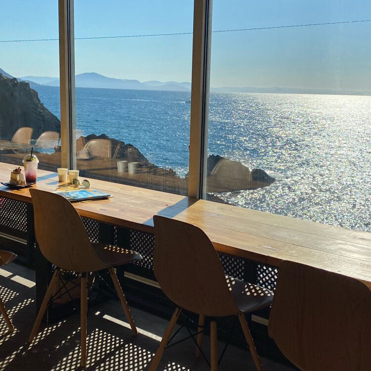 スタイリッシュなエントランスを抜けると、円形のカウンター席が。