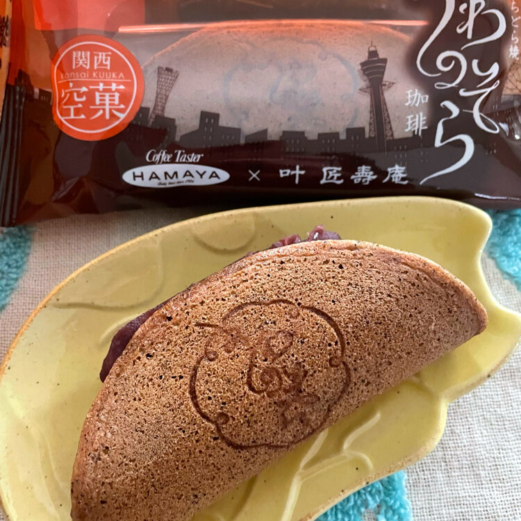関西の珈琲の老舗「HAMAYA」とコラボレーション。関西らしい濃い珈琲の味わいを楽しめるどら焼き生地で、つぶ餡を包みました。