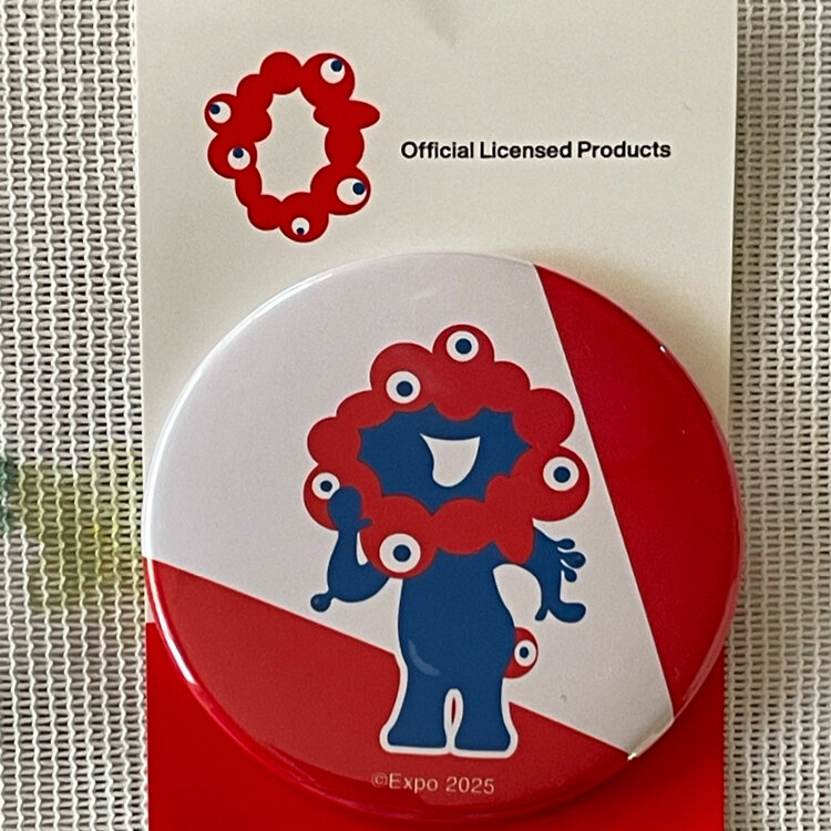 2025大阪・関西万博のグッズコーナーで、キャラクター「ミャクミャク」の缶バッチを買ってみました。