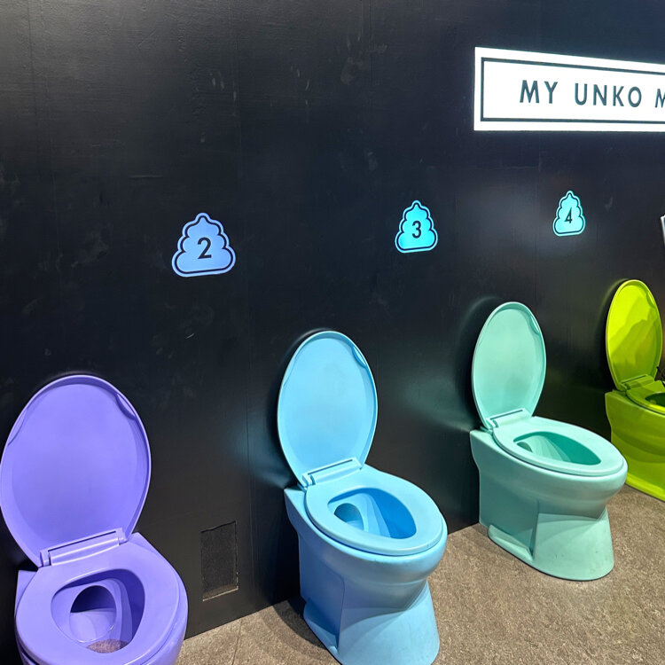 My UNKO makerだそうで、踏ん張った後にはちゃんとカラフルなうんこが便器に。私はゴールドでした!(ピンクとかかわいいのがよかった笑)