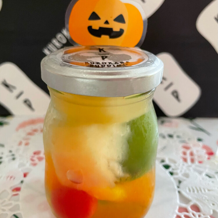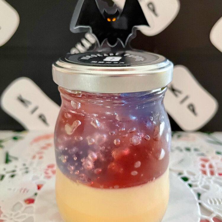 私は「黒壁ガラス館」で出会うステンドガラスをイメージしたしたラムネとブドウの爽やかなジュレとなめらかなプリンの2層のプリンを選びました。