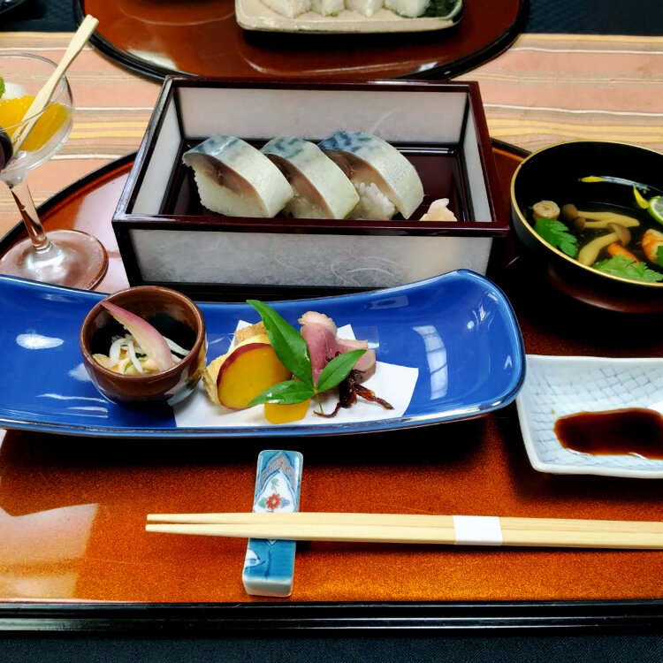 鯖寿司で有名な『すし慶』でお昼です😊 北陸自動車道に乗る前にお昼にしたいと思い木之本インター付近で検索し、たまたま見つけたました♪ 上品な店内で田上山(鯖棒すし)と焼鯖すしを頂きました。とても贅沢な時間を過ごす事ができ大満足!(^^)