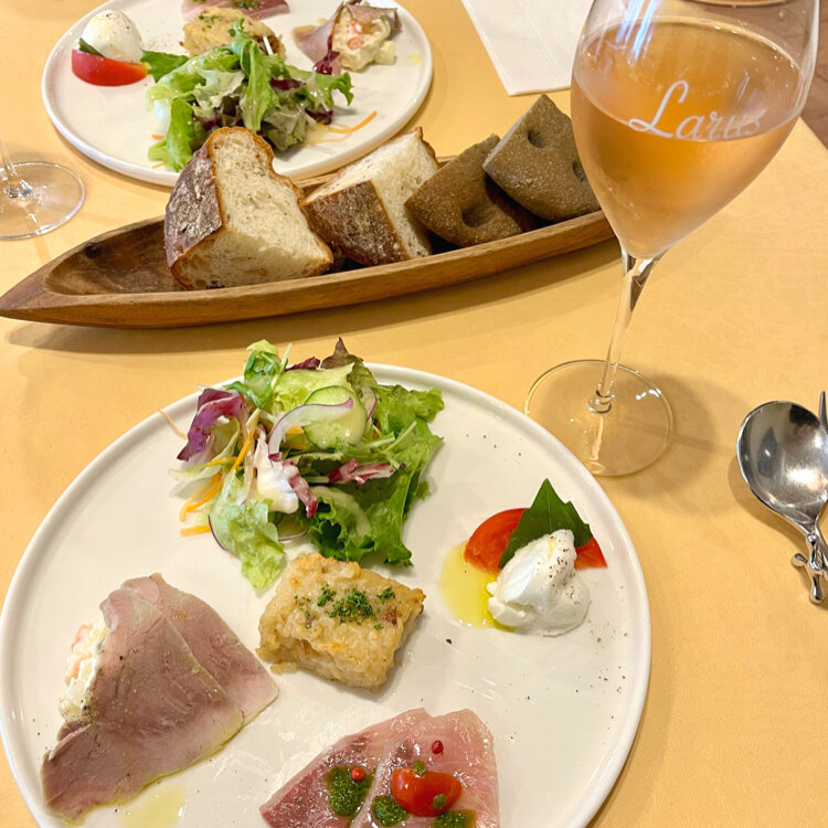 前菜が盛りだくさんで、モッツァレラは水牛だし、ハムも自家製(*´༥`*)♡
