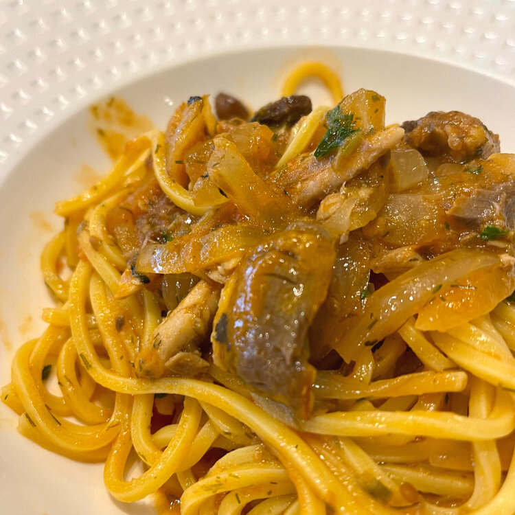 私のパスタは、イワシとウイキョウのパレルモ風~サフランを練りこんだキッタラ~