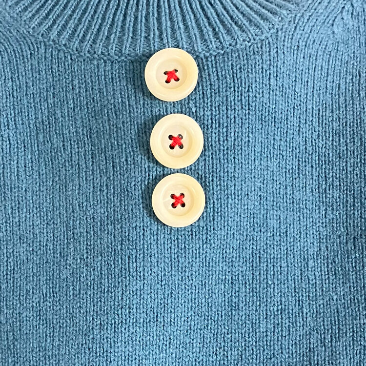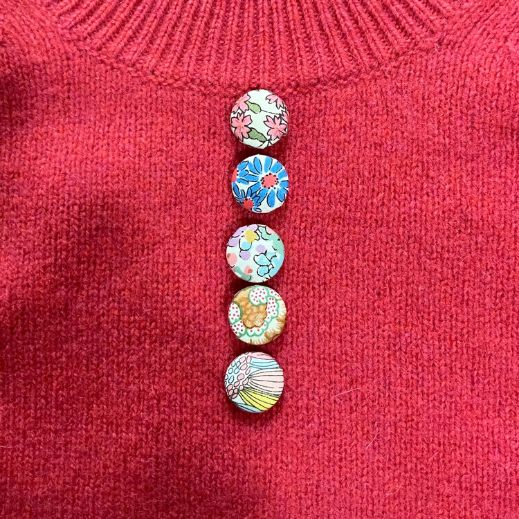ユニクロで11/2まで期間限定で1,990円になっているラムウールのニットにボタンを付けてリメイクしました。 ひとつは濃いめのピンクにリバティ布で作ったくるみボタンを付けて。 もうひとつは、水色にクリーム掛かったボタンを赤い糸でとめて。 もうすぐ11月なのに東京は暖かいですが、ニットを着る季節が楽しみになります。