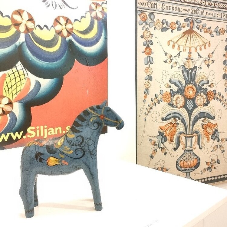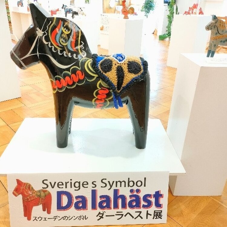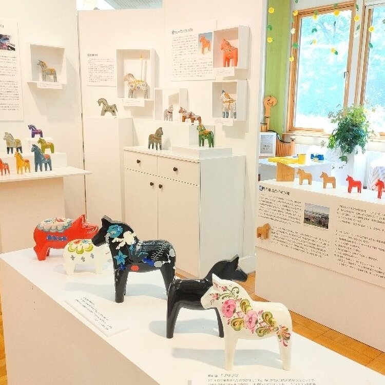 とても大きなものから、手のひらサイズまで大小様々なダーラヘストが飾られていました。